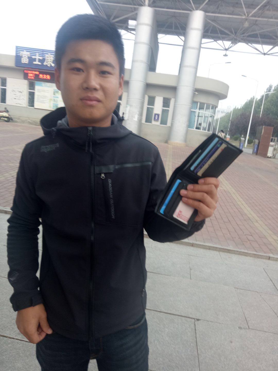 2018年10月16日,我公司員工賈聯(lián)化在富士康清潔時(shí)發(fā)現(xiàn)一個(gè)男士錢包,里面有加油卡、銀行卡以及一些現(xiàn)金,賈師傅連忙通知了部門主管,請(qǐng)她幫忙聯(lián)系失主。