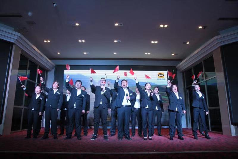 晚會最后,潔霸公司總經(jīng)理程晉軍和各單位、部門負(fù)責(zé)人共同唱響“大中國”。