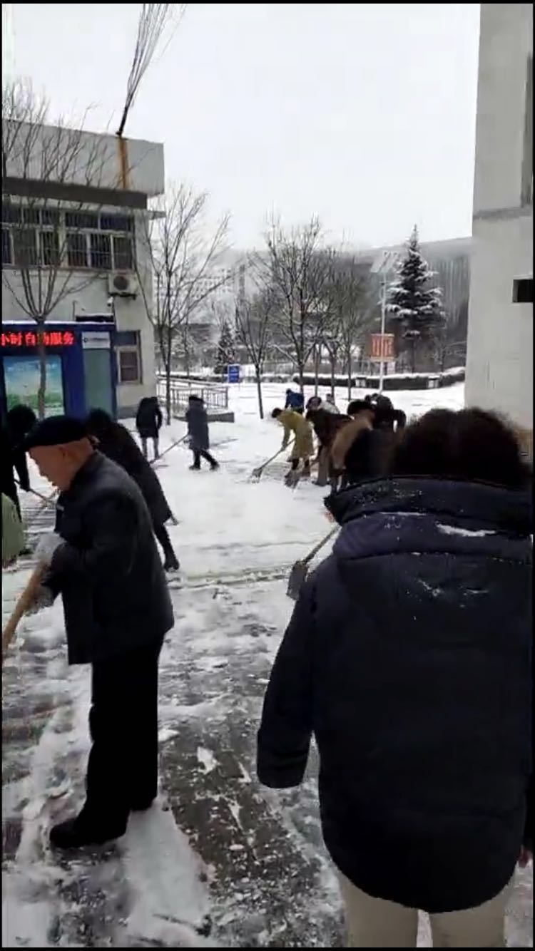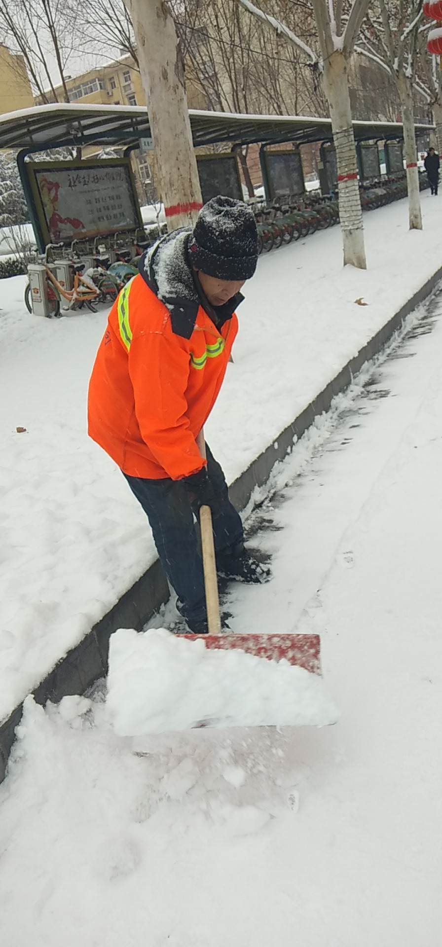 新年的第一場大雪,到處銀裝素裹,扮美了整個晉城,但大雪帶來美景的同時,也給大家的出行帶來了不便。為保障大雪期間出行安全,潔霸公司各保潔點的負責人積極組織員工進行主干道積雪清掃,在除雪過程中,雖然天氣寒冷,但大家除雪的熱情卻不減,大家有的撒融雪劑,有的 清掃積雪,有的用鏟子除冰,奏響鏟雪破冰進行曲。