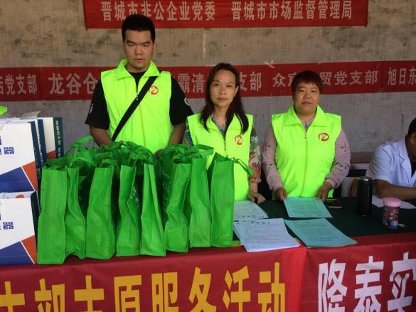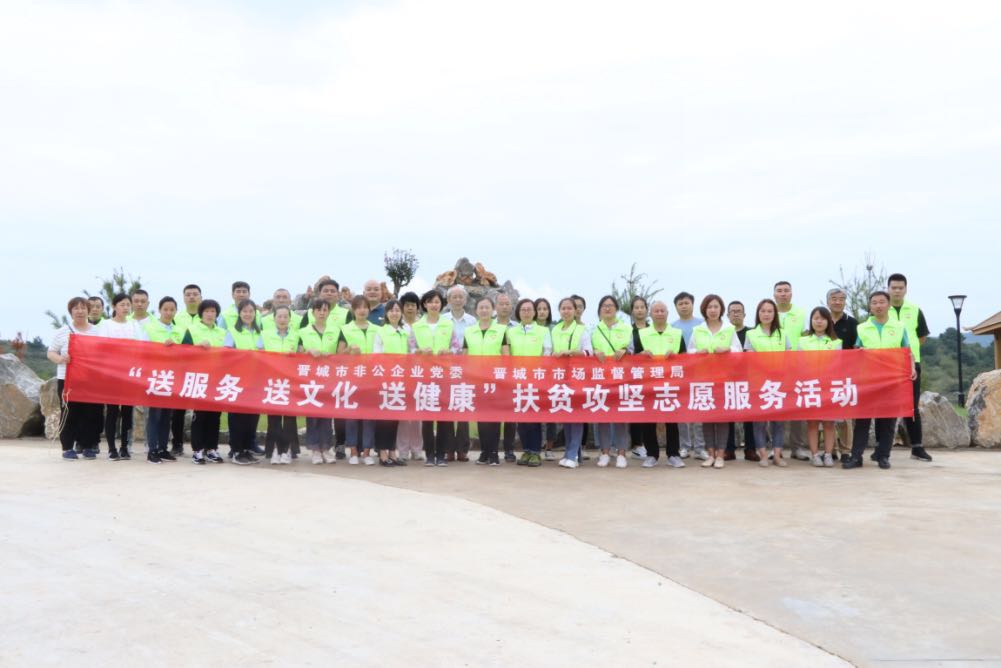 此次活動由晉城市市場監(jiān)督管理局和市非公企業(yè)黨委領(lǐng)導(dǎo)帶隊,非公黨委下屬的潔霸清潔、神利電器、隆泰實業(yè)、龍谷倉等九個支部的黨員志愿者30余人參加,活動旨在關(guān)愛弱勢群體,提供志愿服務(wù),弘揚黨員志愿者精神,切實發(fā)揮文明單位的引領(lǐng)示范作用,送文化和健康下鄉(xiāng),助力晉城市扶貧攻堅行動。
