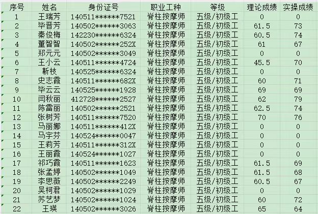 2024年10月13日第11批保健按摩師初級(jí)認(rèn)定人員成績(jī)公示