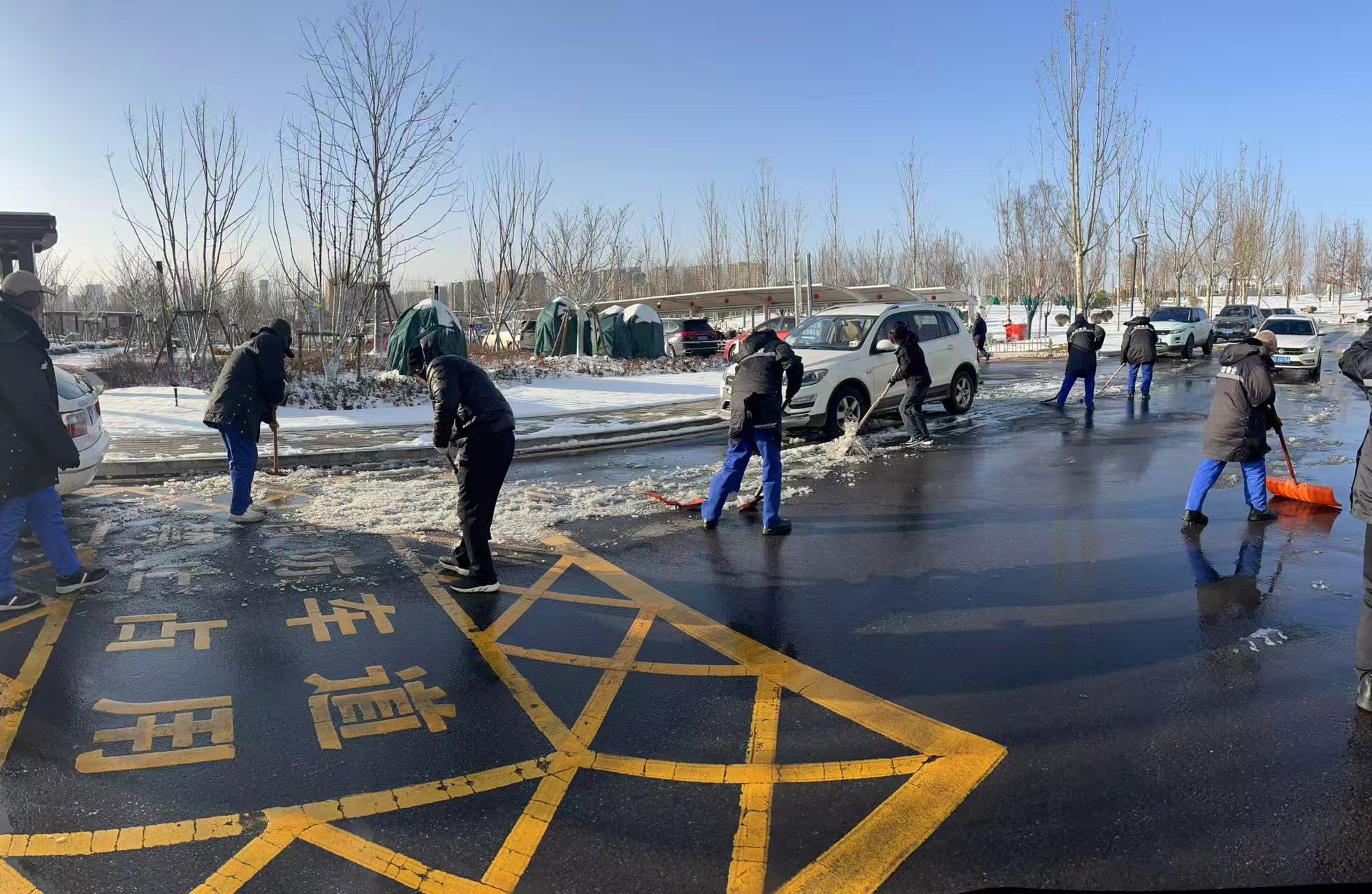 為確保道路暢通無(wú)阻,保障市民安全出行,集團(tuán)公司各基層單位服務(wù)點(diǎn)迅速響應(yīng),以雪為令、聞雪而動(dòng),在市政府、澤州縣政府、市醫(yī)院、市“三館”、富士康園區(qū)、陽(yáng)城北留鎮(zhèn)、蘭花城、花園水系公園、兩河公園及百潔物業(yè)各服務(wù)小區(qū)等區(qū)域,開(kāi)展清雪除冰專項(xiàng)行動(dòng)。現(xiàn)場(chǎng),除雪機(jī)械轟鳴作業(yè),干部職工手持鐵鍬、掃帚等工具,分工協(xié)作、默契配合,有的操作推雪機(jī)開(kāi)道,有的揮動(dòng)鐵鍬鏟除堅(jiān)冰,有的用掃帚清理余雪……寒風(fēng)凜冽中,處處可見(jiàn)熱火朝天的勞動(dòng)場(chǎng)景。