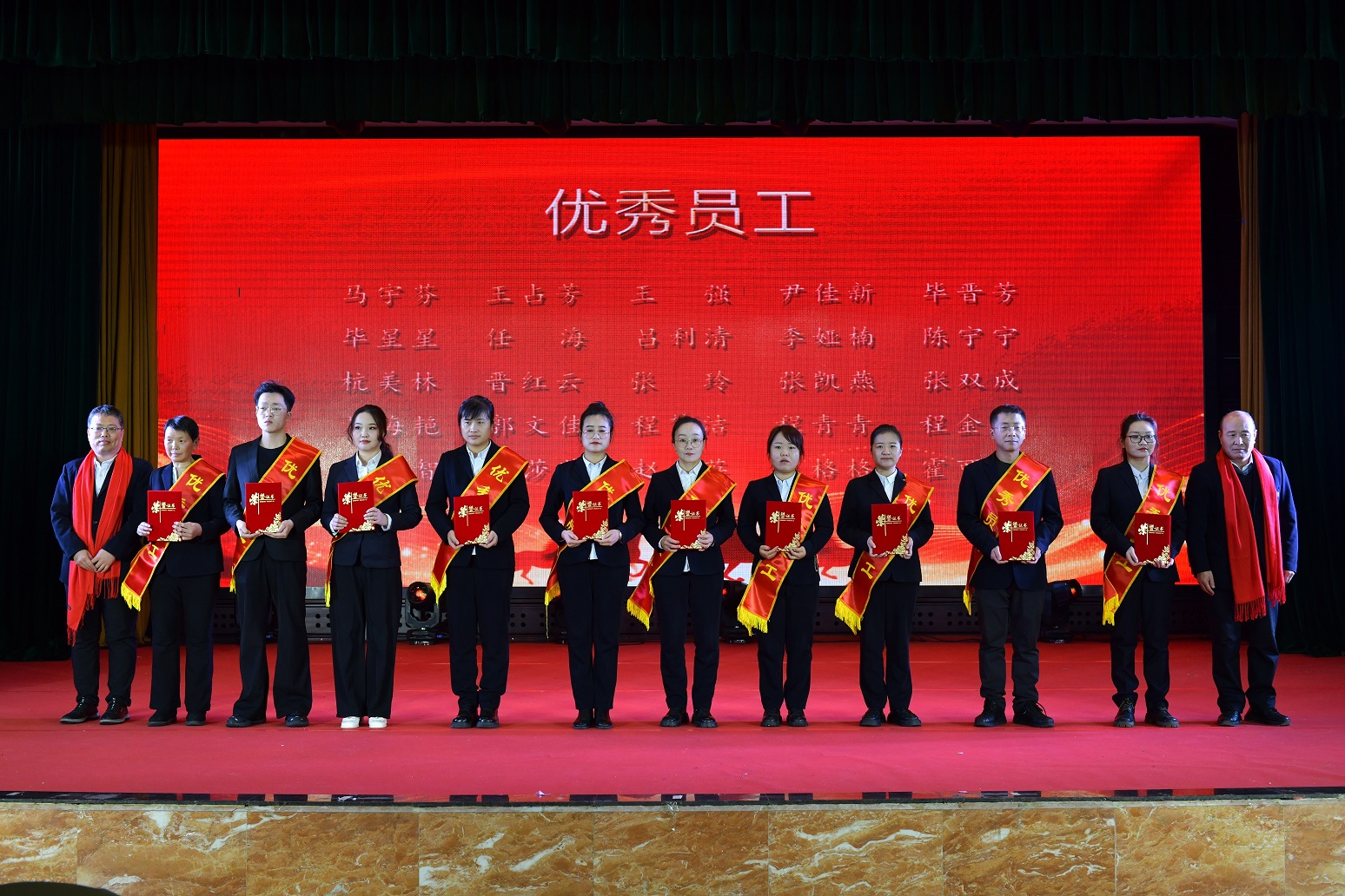 穿插于節(jié)目間的多輪幸運(yùn)抽獎(jiǎng),不時(shí)掀起晚會(huì)的小高潮。豐厚的獎(jiǎng)品承載集團(tuán)對(duì)員工的殷切祝福,每一次大屏幕的滾動(dòng)都牽動(dòng)著全場心弦,中獎(jiǎng)?wù)叩臍g呼與掌聲交織,掀起一波波歡樂高潮。 2025年度表彰環(huán)節(jié)莊嚴(yán)而熱烈。一批在2025年度工作中表現(xiàn)卓越的“優(yōu)秀經(jīng)理”“優(yōu)秀主管”“技術(shù)標(biāo)兵”“優(yōu)秀員工”“先進(jìn)個(gè)人”等依次登上榮耀的舞臺(tái),他們來自不同的工作崗位,但都是愛崗敬業(yè)、精益求精、勇于擔(dān)當(dāng)?shù)牡浞。公司領(lǐng)導(dǎo)為他們頒發(fā)榮譽(yù)證書與獎(jiǎng)杯,全場響起經(jīng)久不息的掌聲,這是對(duì)奮斗者最高的禮贊。